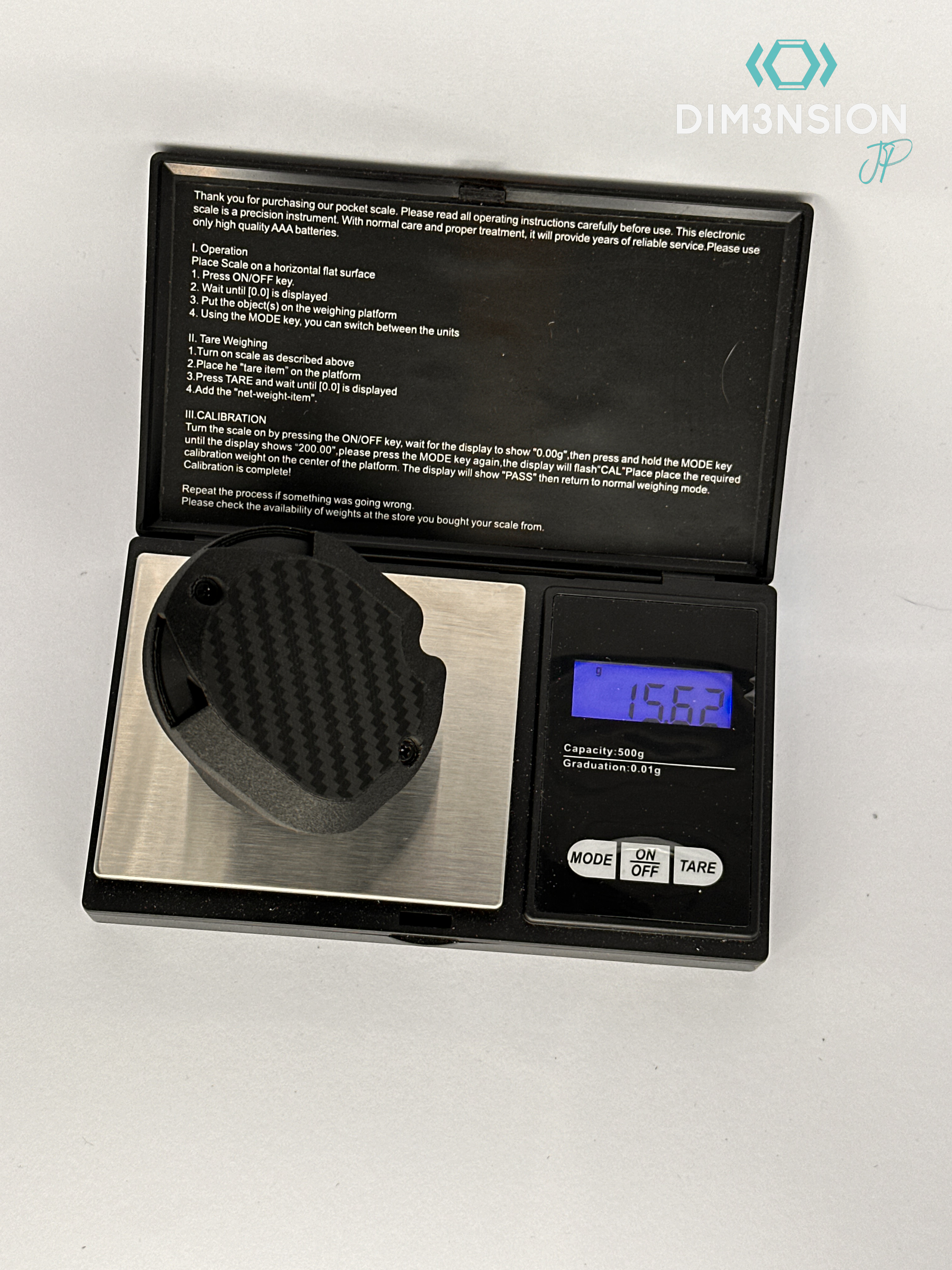 Dabei ist ein Materialmix aus verschiedenen hochwertigen Kunstoffen in Industriequalität und Carbon herausgekommen, womit wir ein Gewicht von gerade mal 16,5 Gramm in der Original Version erreichen.