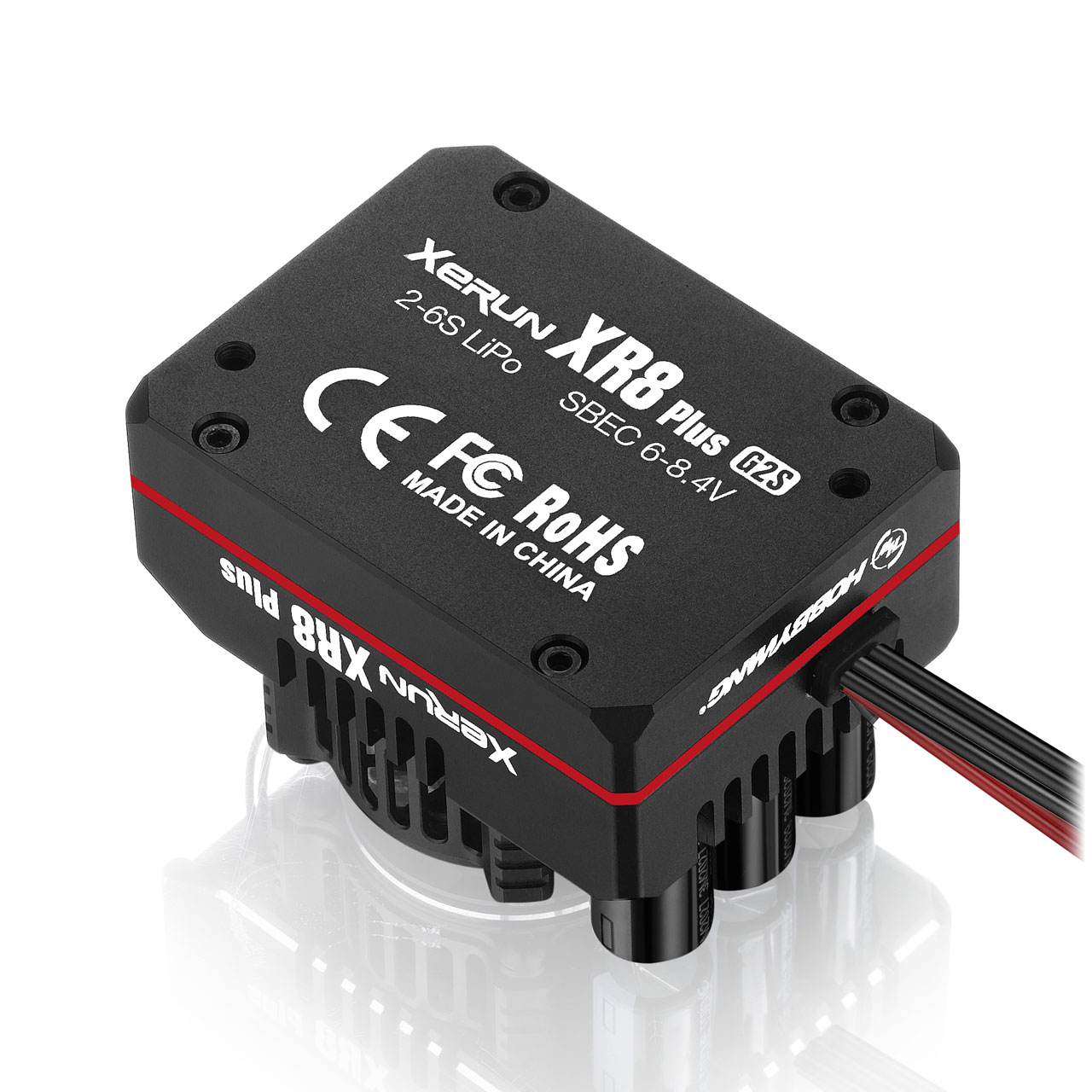 Ausgelegt zur Nutzung für 2-6S LiPos-Akkus sind die ultra-weiche Kabelführung aus 11AWG-Kabeln, die eigens designten Lötfähnchen sowie das edle Aussehen an sich Beispiele für die hochwertige Verarbeitung. In Sachen Funktionalität glänzt der XR8 Plus G2S mit einem erweiterten BEC von 6-8,4V in 0,1-Schritten, denn so ist eine große Bandbreite an Servos ansprechbar. Auch der Thermalschutz der Kondensatoren bringt Sicherheit und Langlebigkeit. Und wer viel Wert auf die Leistungsmessung an sich legt, kommt natürlich auch voll und ganz auf seine Kosten. Wird der Regler mit der Hobbywing Applikation verknüpft, können die gesammelten Daten nicht nur ausgewertet, sondern auch live betrachtet werden.