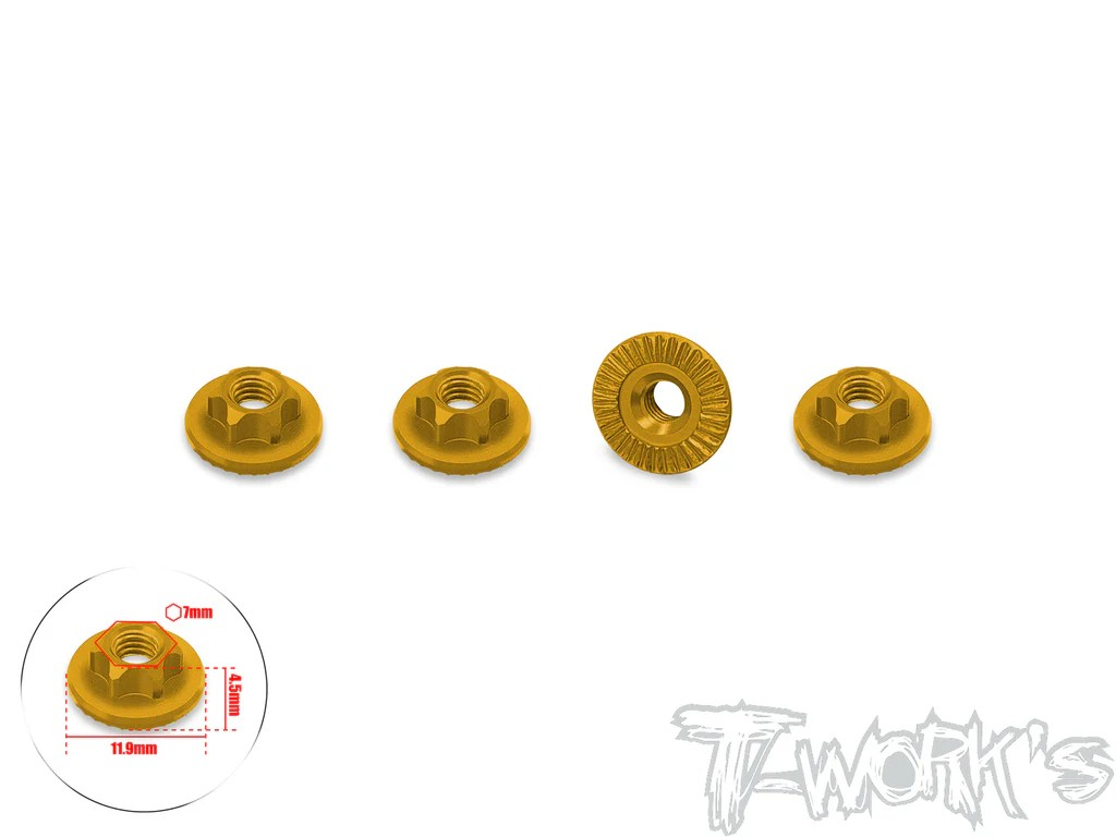 T-Works - Alu Muttern 7mm Sechskant - geriffelt - ultra light weight - 11.9mm Fläche - Gold (4pcs)